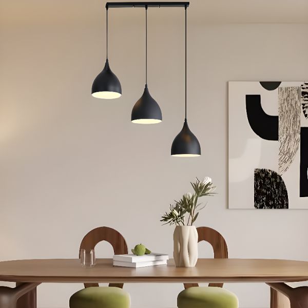 Scandinavian Industrial 3-Light Linear Pendant Fixture, Hanging Kitchen Island Chandelier with Adjustable Cords for Dining Room - Black 110V-120V Hourglass