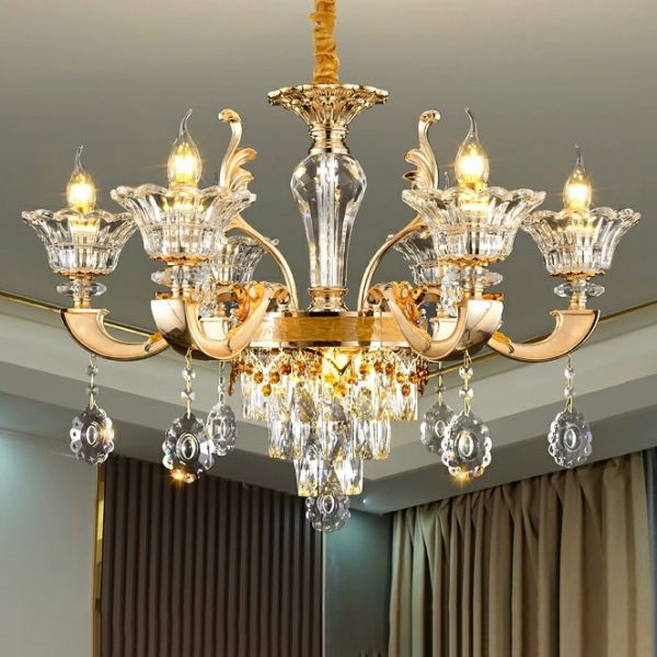 Baroque Gold Crystal Chandelier, Ornate Pendant Light for Formal Dining Room & Foyer Entryway - 110V-120V 27.5"