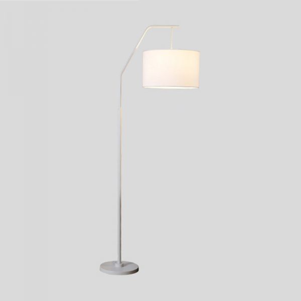 Contemporary Arched Floor Lamp with Textured Fabric Shade and Weighted Metal Base - 110V-120V Fixed Height White