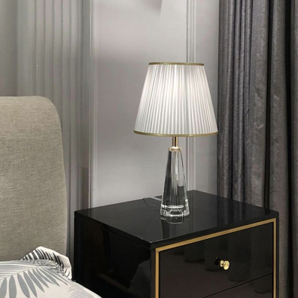 Glass Base Bedside Table Lamp with Barrel Shade Adapted for LED/Incandescent/Fluorescent Light - 110V-120V Grey