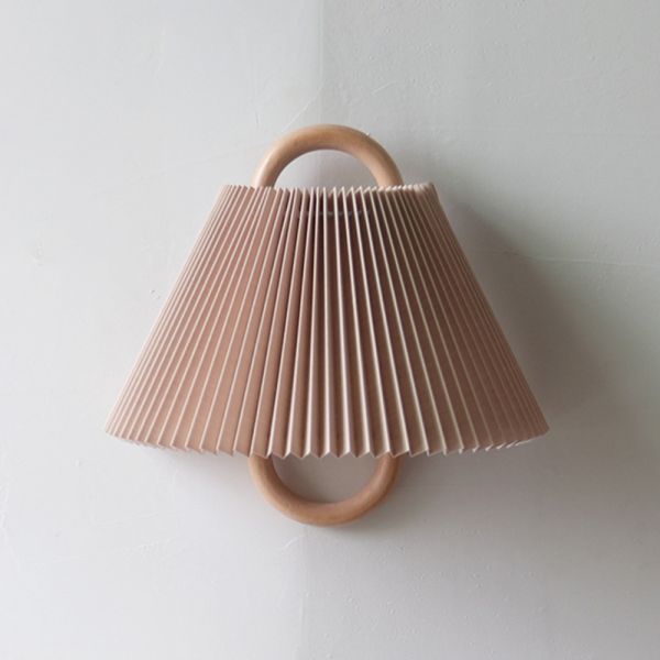 Mid-Century Vintage Wall Sconce, Pleated Fabric Shade with Solid Wood Base for Bedroom - 110V-120V Cone No Switch