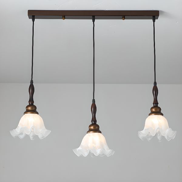French Country 3-Light Linear Kitchen Island Pendant with Frosted Scalloped Glass Shades - 110V-120V