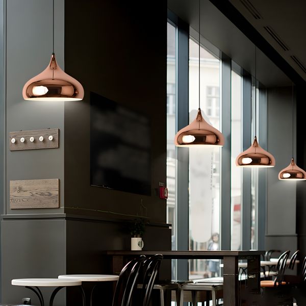 Contemporary Rose Gold Pendant Light, Mirror Finish Metal Hanging Fixture with White Interior - 110V-120V Onion