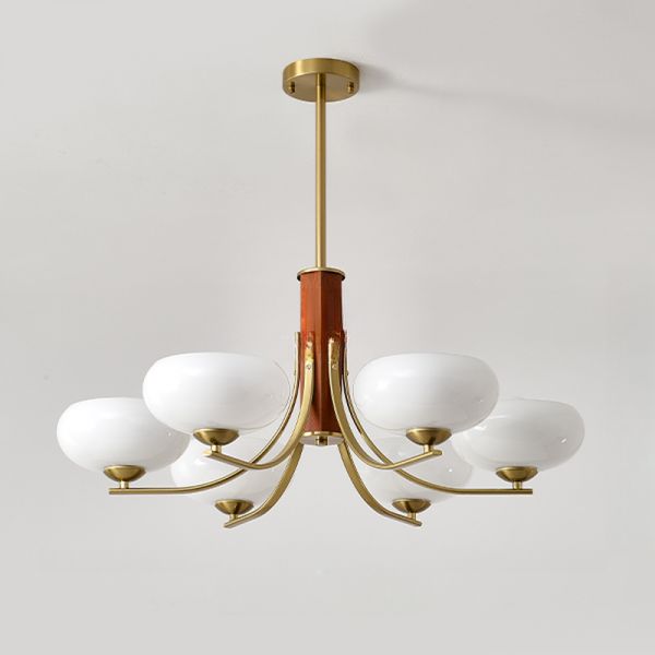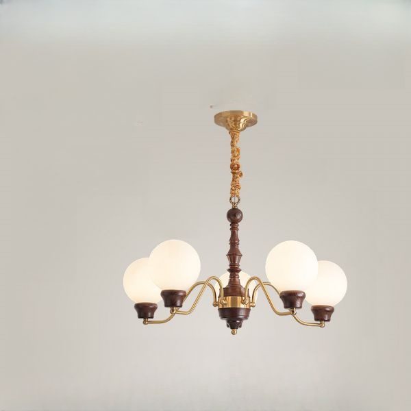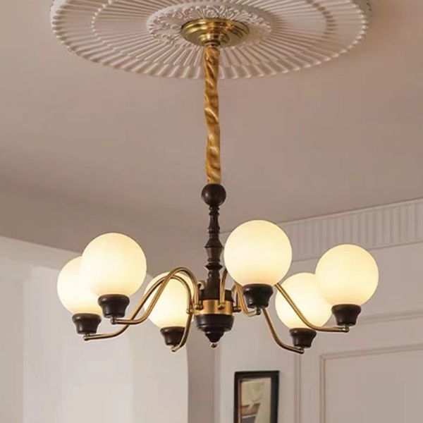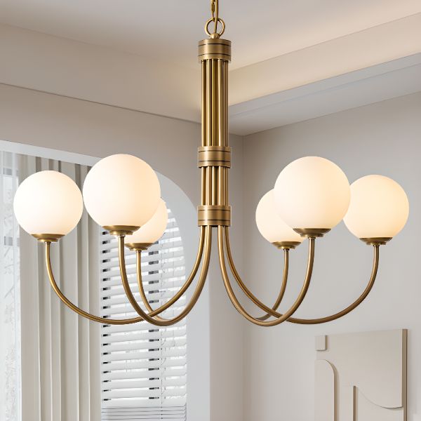 Brass Adjustable Chain Chandelier with 6 Lights, Ball Fixture, Chain Mounting, Background Shade for Residential Use, 110V-120V, Milk White