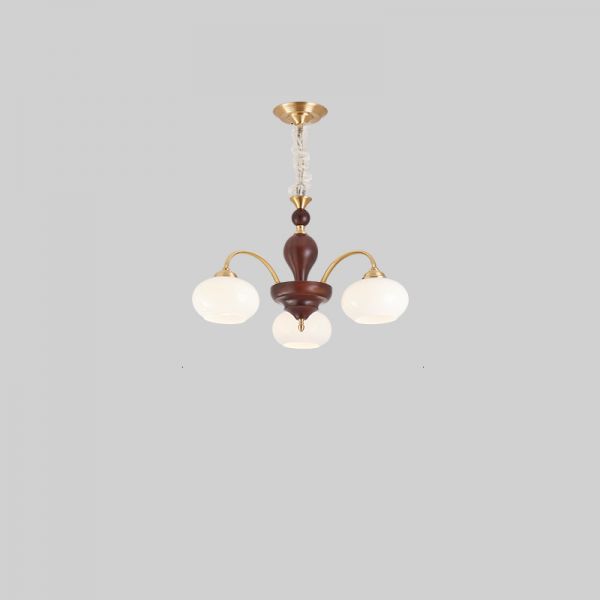 Amphora Shape Adjustable Hanging Rod Chandelier Light in Golden with 3 Lights, Downward Vitreous Shade for Residential Use, 110V-120V, Milk White
