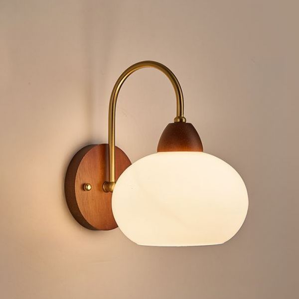 Ash Wood Wall Light with Down Glass Shade, 1 Light Wall Lamp for Residential Use, LED/Incandescent/Fluorescent, 110V-120V, Milk White