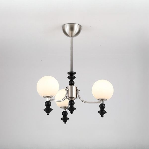 Nordic Style Pendant Light Black Wrought Iron Glass Orb Molecular Styling Chandelier for Dining Room - 6 110V-120V Milk White