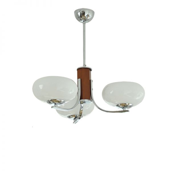 Shiny Chandelier with Adjustable Hanging Rod, Upward Shade, 3 Lights, and LED/Incandescent/Fluorescent Light for Residential Use, 110V-120V, Milk White
