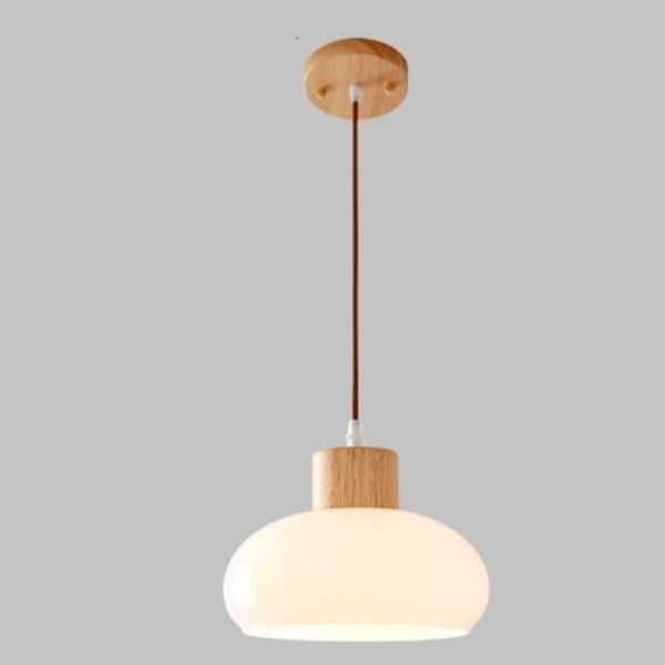 Pendant Lamp with Natural Finish, Symmetrical Fixture, Vitreous Shade, Thread Mounting, Direct Wired Electric for Residential Use, Includes Cover, 110V-120V, 8", Round, Milk White