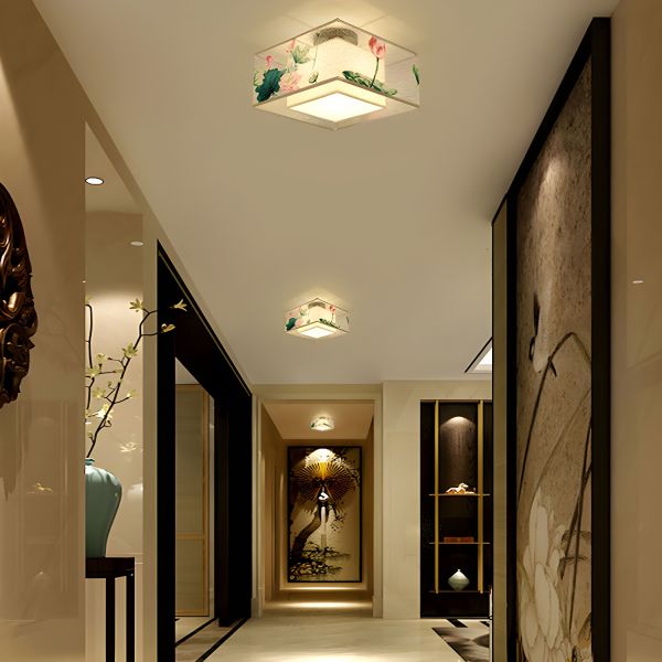 Chinese Style Flush Light Fabric Flush Mount Ceiling Fixture for Dinning Room - 110V-120V Scalloped Square