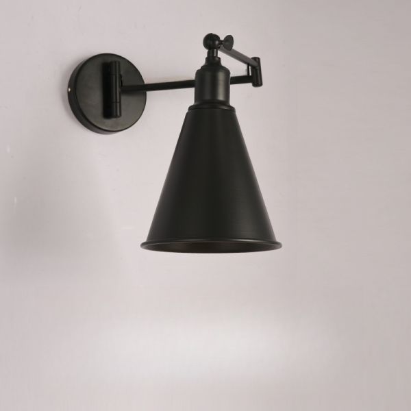 Swing Arm Metal Wall Sconce with Midnight Black Down Shade, 1 Light for Residential Use, Direct-wired, Black, 110V-120V, 7"