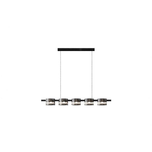 5 Lights Island Light Fixture with Ink Vitreous Shade, Polygonal Design, Third Gear Color Temperature for Residential Use, Versatile Hanging Length, 110V-120V