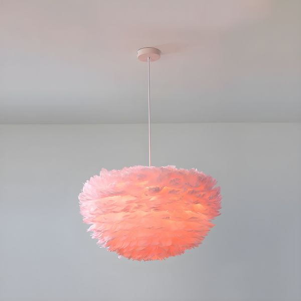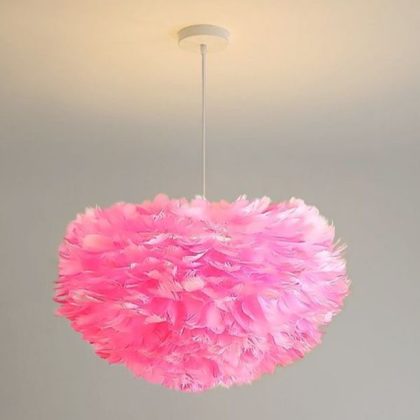 Nordic Real Goose Feather Pendant Light, Soft Ambient Glow Chandelier - 110V-120V Pink 12"