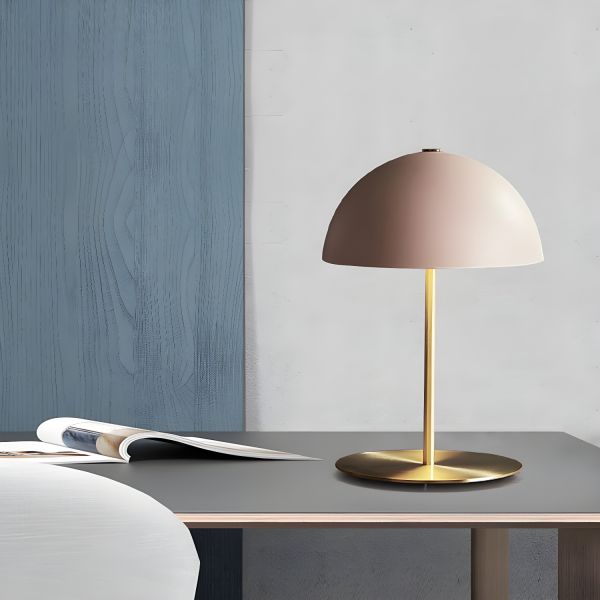 Contemporary Metal Mushroom Table Lamp, Angled Dome Shade Accent Light for Bedroom - 110V-120V Pink