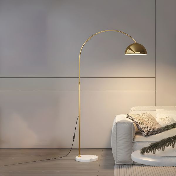 Sleek Contemporary Arc Floor Lamp with Marble Base & Adjustable Dome Shade - Gold 110V-120V Semicircle