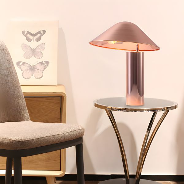 Contemporary Metal Mushroom Table Lamp, Angled Dome Shade Accent Light for Bedroom - 110V-120V Rose Gold