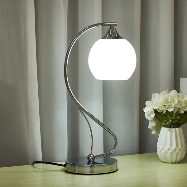 Contemporary Arched Metal Table Lamp with White Globe Shade - 110V-120V Silver