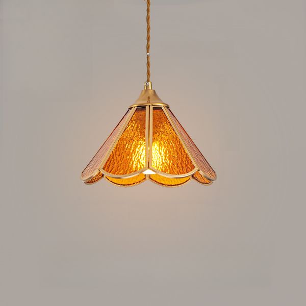 Cone Ceiling Lamp with Aurous Glass Shade for Residential Use, Hardwired Cordage Mounting, 110V-120V, Tawny