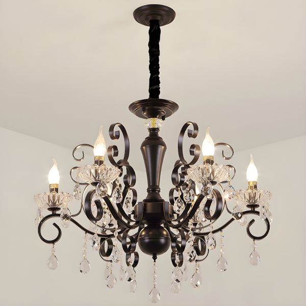 Rustic Farmhouse Black Iron Chandelier with Faceted K9 Crystal Accents - 110V-120V Black 6