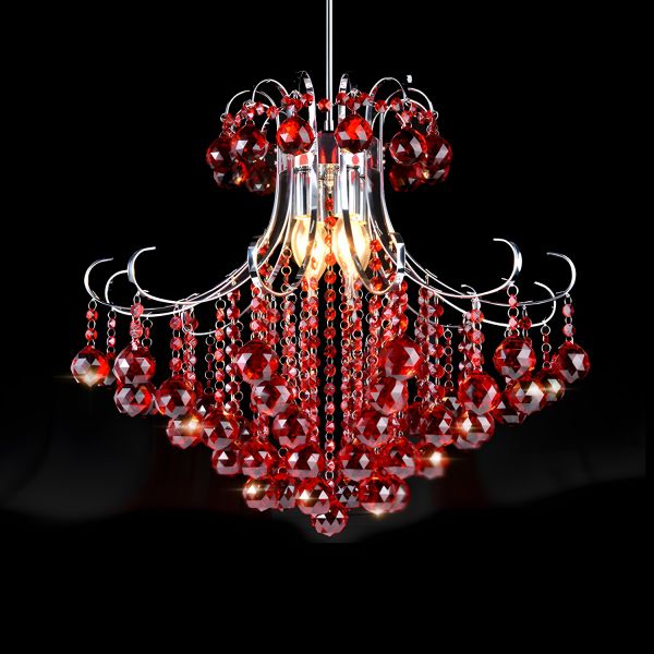 3-Light Flared Shape Pendant Chandelier Vintage Red Crystal Orbs Hanging Ceiling Light