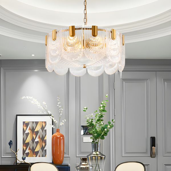 Art Deco Scalloped Glass Chandelier, Antique Brass Pendant Fixture - 110V-120V Brass Small 1 Tier