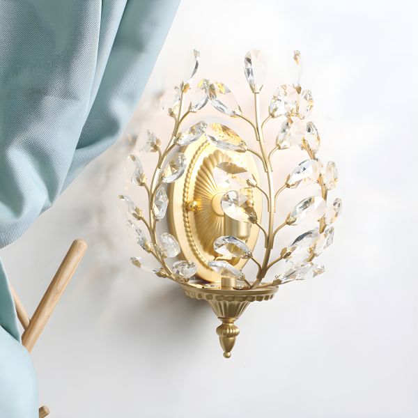 Luxury Botanical Crystal LED Wall Sconce - Gold Metal Fixture for Bedroom, Vanity & Living Room - 110V-120V Gold