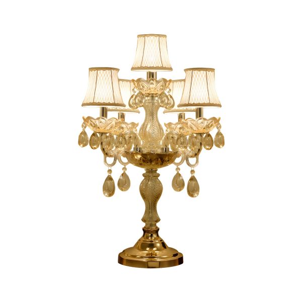 Champagne Crystal Traditional Table Lamp with Empire Shade and Non-Adjustable Height - 110V-120V Gold
