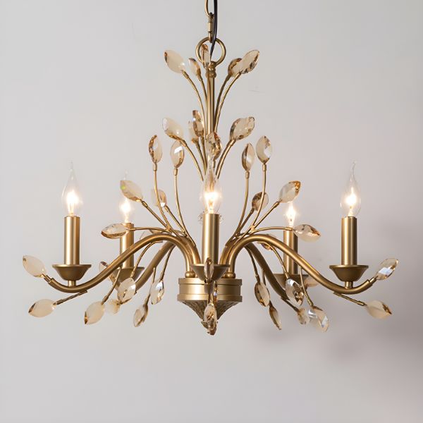 French Country Gold Chandelier with Amber Crystal Leaf Accents - 110V-120V Gold 5