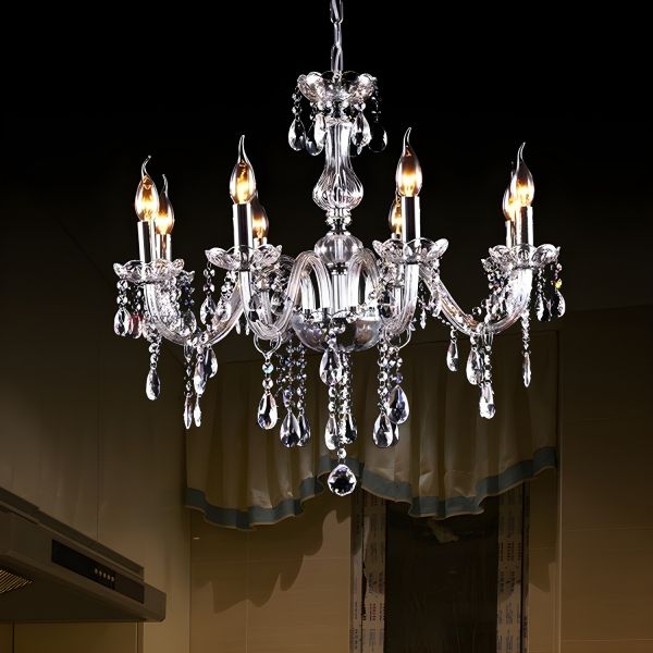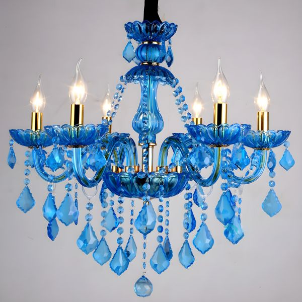 Crystal Candle Chandelier Light Fixture Traditional Living Room Ceiling Pendant Chandelier - 110V-120V Blue