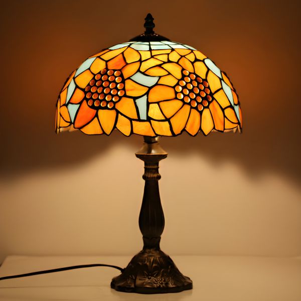Domed Table Light 1 Light Orange Stained Glass Tiffany Style Sunflower Patterned Nightstand Lamp without Switch