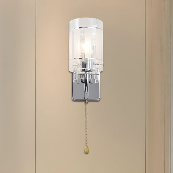 Cylinder Dining Room Wall Lamp Warehouse Clear Glass 1-Head Chrome Sconce Light with Pull Chain