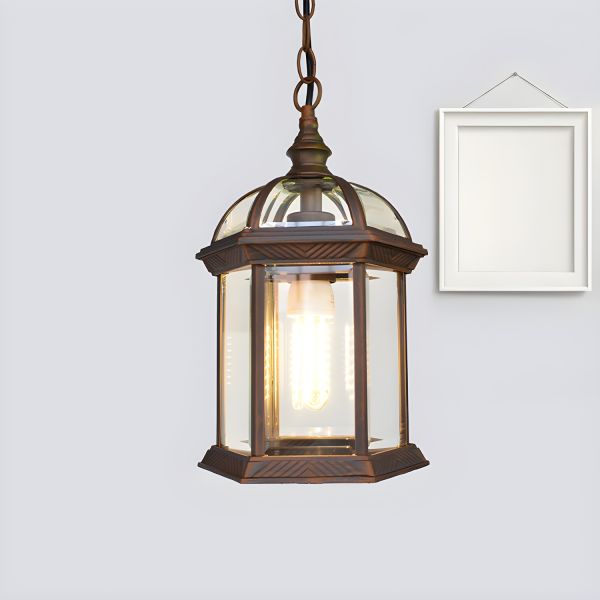 Vintage Hexagon Lantern Ceiling Lighting 1-Light Clear Glass Hanging Lamp in Brass - Clear 110V-120V