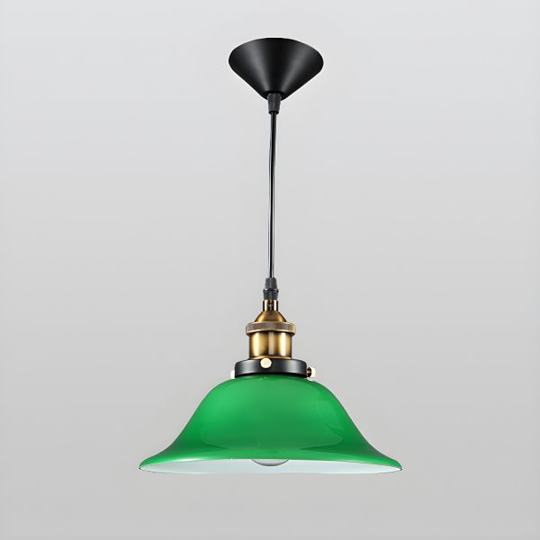 Vintage Industrial Emerald Green Glass Pendant Light with Antique Brass Accents - 110V-120V Green 7.5"