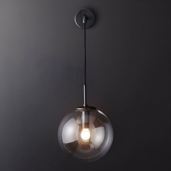 Single Swing Arm Sconce with Sphere Shade Clear Glass Vintage Kitchen Wall Mount Lamp in Black