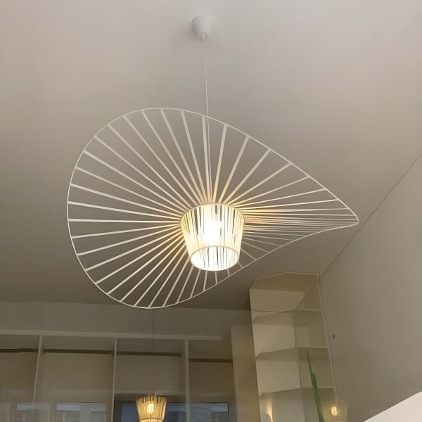 Scandinavian Wire Spoke LED Pendant Light, Airy Architectural Ceiling Fixture - 12.5" 110V-120V White White Light