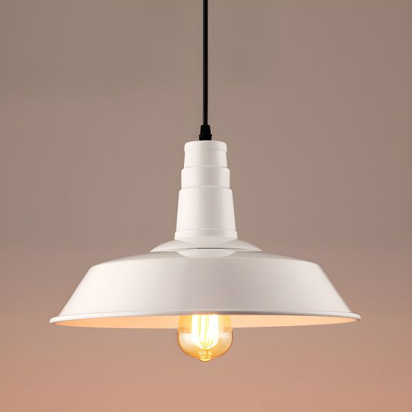 Industrial Vintage Barn Pendant Light Lacquered Iron Indoor Hanging Lamp - 110V-120V White