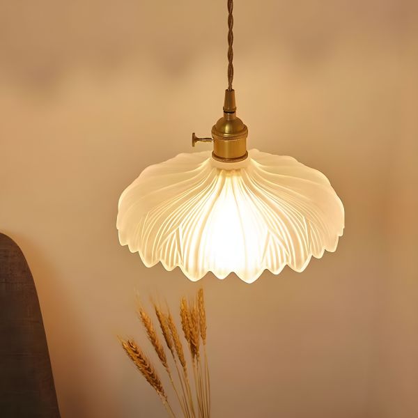 Vintage Ribbed Glass Pendant Light, Brass Hanging Lamp for Kitchen Island - 110V-120V Textured White 1