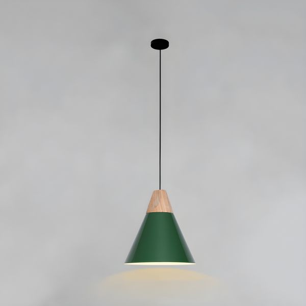 Nordic Matte Metal Dome Pendant Light with Natural Wood Accent - Green 110V-120V 14"