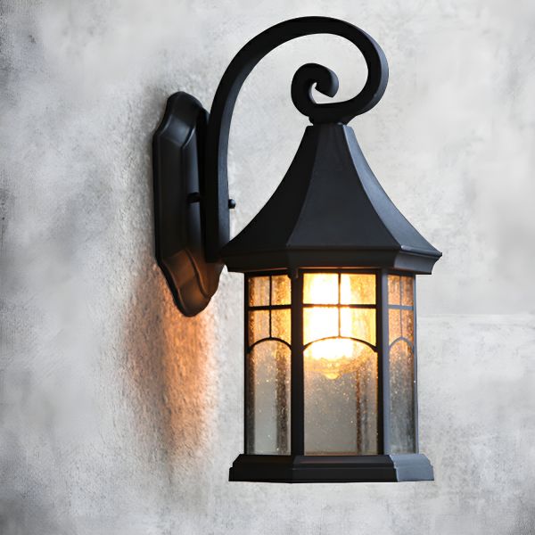 Vintage Outdoor Lantern Wall Sconce - Die-Cast Aluminum Light - 110V-120V Black