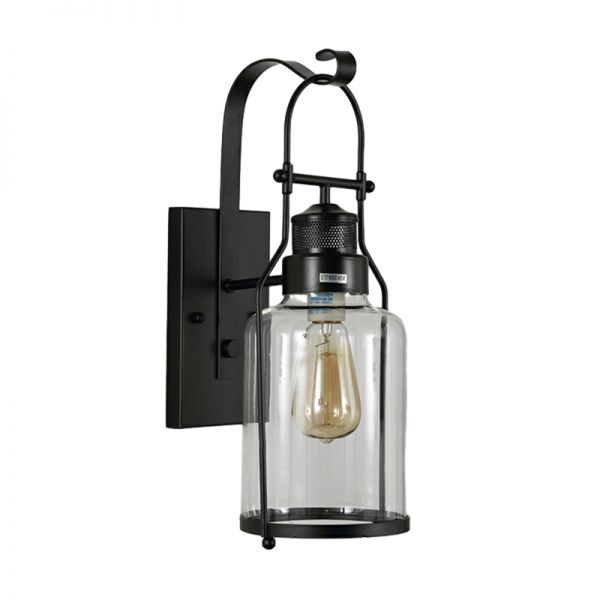 Industrial Retro Restaurant Wall Light Wrought Iron Wall Lamp with Clear Glass Shade - 110V-120V Black