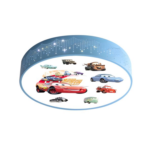 Drum Ceiling Mounted Light Simple Iron LED Blue Flush Lighting with Car Pattern for Children Room, A