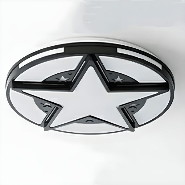 Whimsical Star Pattern LED Flush Mount Ceiling Light for Kids Bedroom - Black 110V-120V 12" White Light