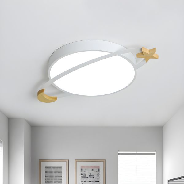 Planet & Star Kids Ceiling Light Space-Themed LED Flush Mount for Bedrooms & Playrooms - White 110V-120V Small White Light