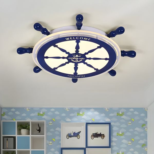 Nautical Ships Wheel Ceiling Light Blue LED Flush Mount for Kids Room & Coastal Decor - Blue 110V-120V
