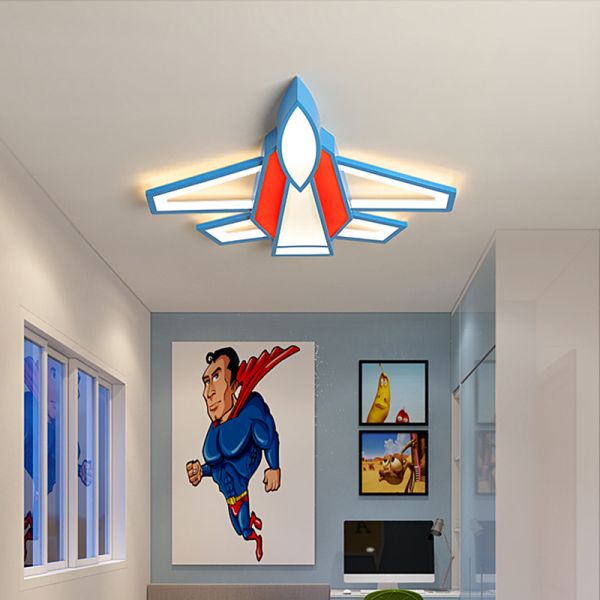 Creative Fighter Jet LED Ceiling Light, Cartoon Airplane Flush Mount Fixture for Kids Bedroom, Aviation Decor - Red 110V-120V 21.5" White Light