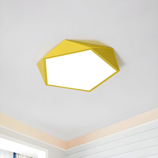 Geometric Hexagon Flush Mount 5 Colors & 3 Sizes for Modern Bedrooms & Living Rooms - Yellow 110V-120V Small White Light