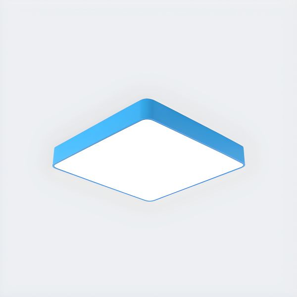 Minimalist Square LED Flush Mount Ceiling Light, Low Profile Fixture for Bedroom & Playroom - Blue 110V-120V White Light