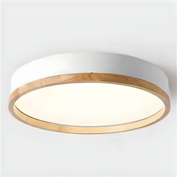 Scandinavian Minimalist Round LED Flush Mount Ceiling Light with Natural Wood Accent Ring - White 110V-120V 12" White Light