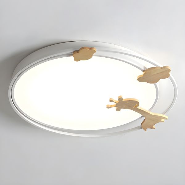 Scandinavian Kids Flush Mount Ceiling Light with Wooden Decor and Soft LED Illumination for Nursery - White 110V-120V Small White Light