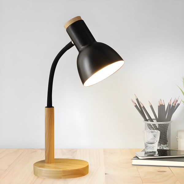 Scandinavian Minimalist Desk Lamp with Adjustable Gooseneck and Wood Base - 110V-120V Black